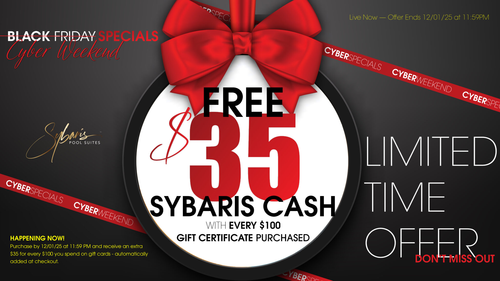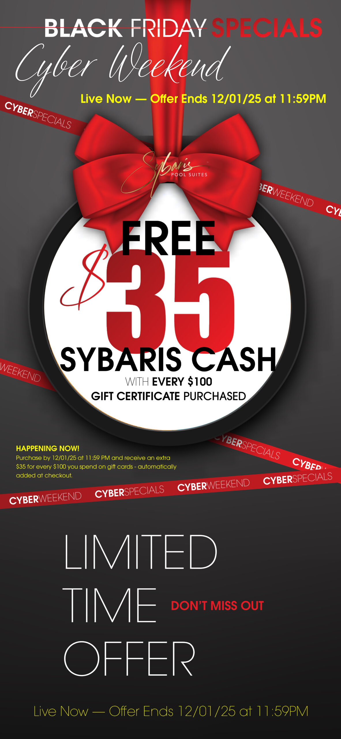 Gift Certificate must be purchased by 12-24-25 to receive Bonus Sybaris Cash.